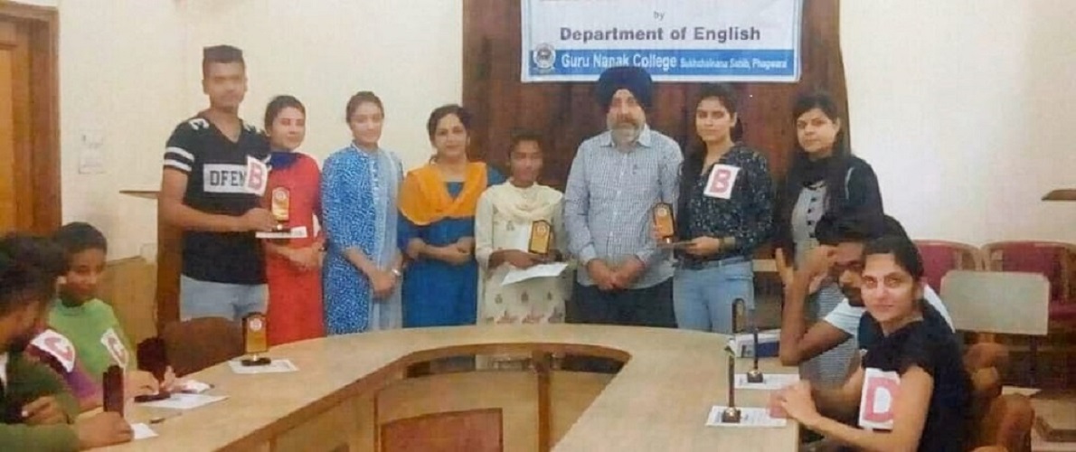 Winners of the Language Awareness Quiz (organized by English literary Society) being awarded with trophies and certificates on Oct. 25, 2016