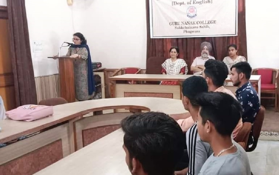 Jasvir Kaur of B.A. Sem III addressing the learners of Shri Hargobind Senior Secondary School, Palahi on 10-12-2021